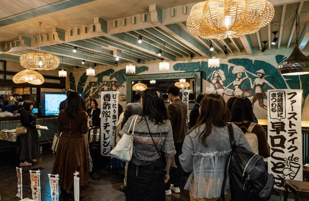 当イベントでは、延岡市を「知らない」、「訪れたことがない」方々を中心に、インフルエンサーやメディア・旅行事業者など約85名を招待し、本市から参加した、和食 勇魚(本町)、パスタ&カフェ コッコロ(平原町)、中国酒菜 杉山(船倉町)の各料理人による延岡の食材を使った料理とともに、三蔵の地酒をペアリングにより提供したほか、延岡にまつわるミニアトラクションやクイズ大会、観光情報等のPRブースの設置など、延岡を知っていただくための催しを行いました。